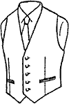 Hochgeschlossen wird es trotzdem mit Weste und passendem Plastron oder Schleifenband getragen. Das Sakko hat vorzugsweise eine verdeckte Knopfleiste und eine Länge von 80-85 cm,